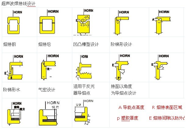 1无定形聚合物,特别是室温下外于玻璃态的无定形物,通常是焊接工艺的好的候选材料。玻璃态无定形聚合物具有良好的透射性能,允许用看近场和远场焊接技术成功焊接。当材料较软时,开定形材料的超声焊接就成问题。如:焊接高冲击ps将比焊接通用ps一般需要更多能量和附加振幅。2半结晶聚合物一般更难用超声能量焊接。增加由焊接体系发射的能量值(即增加振幅);缩短焊头/制件接触面与接头接口间的距离;使用近场超声焊接技术;使用振幅高达0.05-0.15mm的焊头。这些高焊接振幅需要使用钛焊头。当需要高强度、密封组装时,剪切接头和斜坡接合对半结晶聚合物都适用。